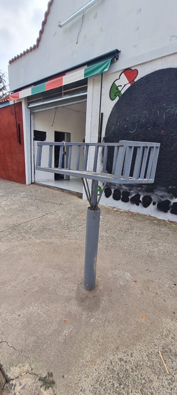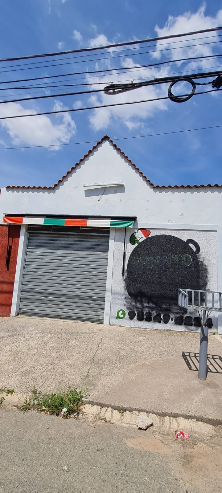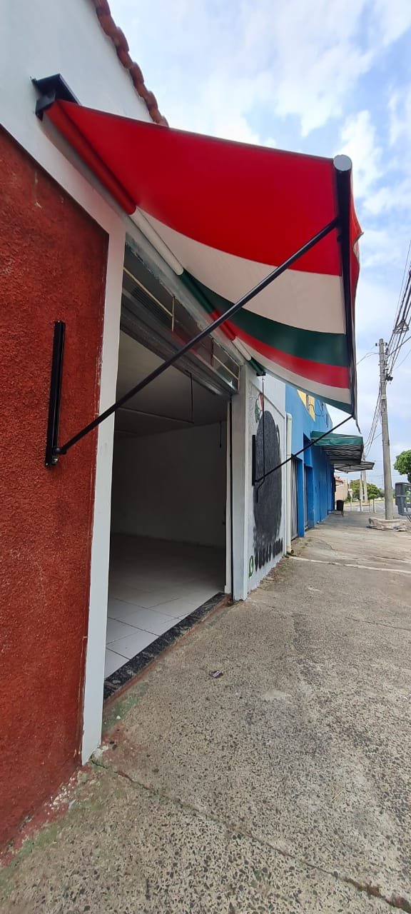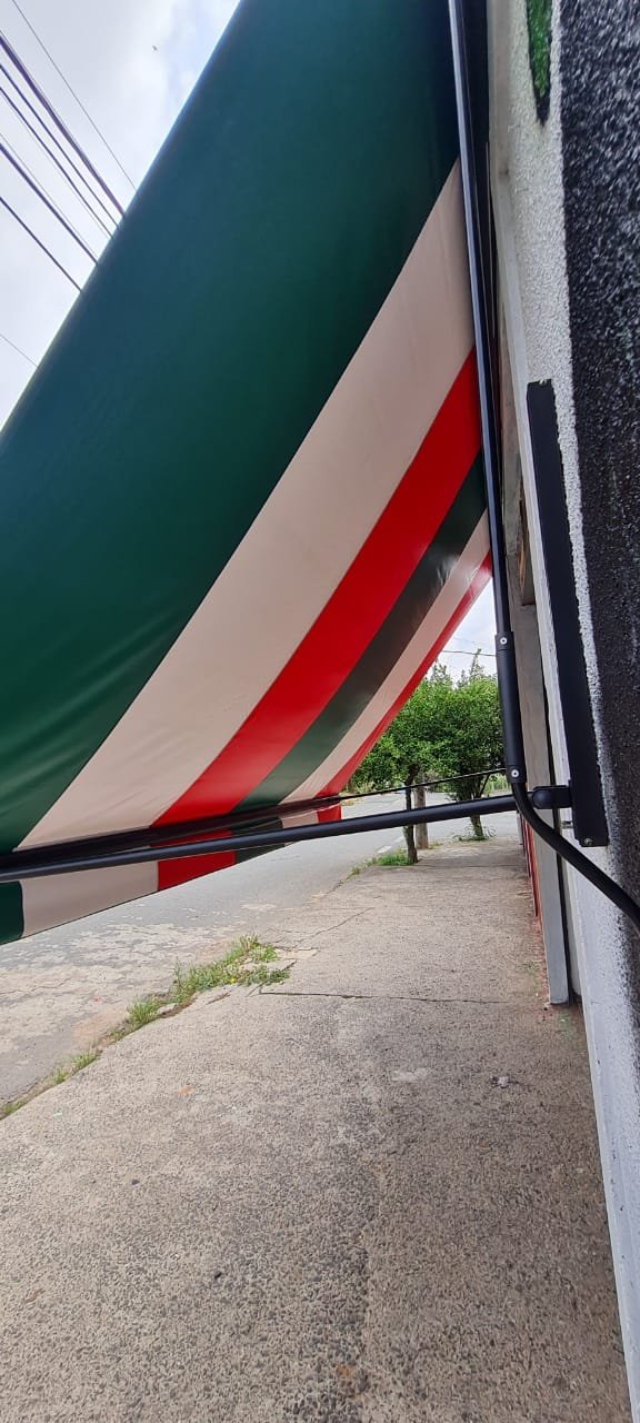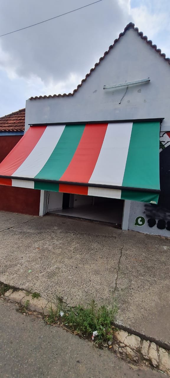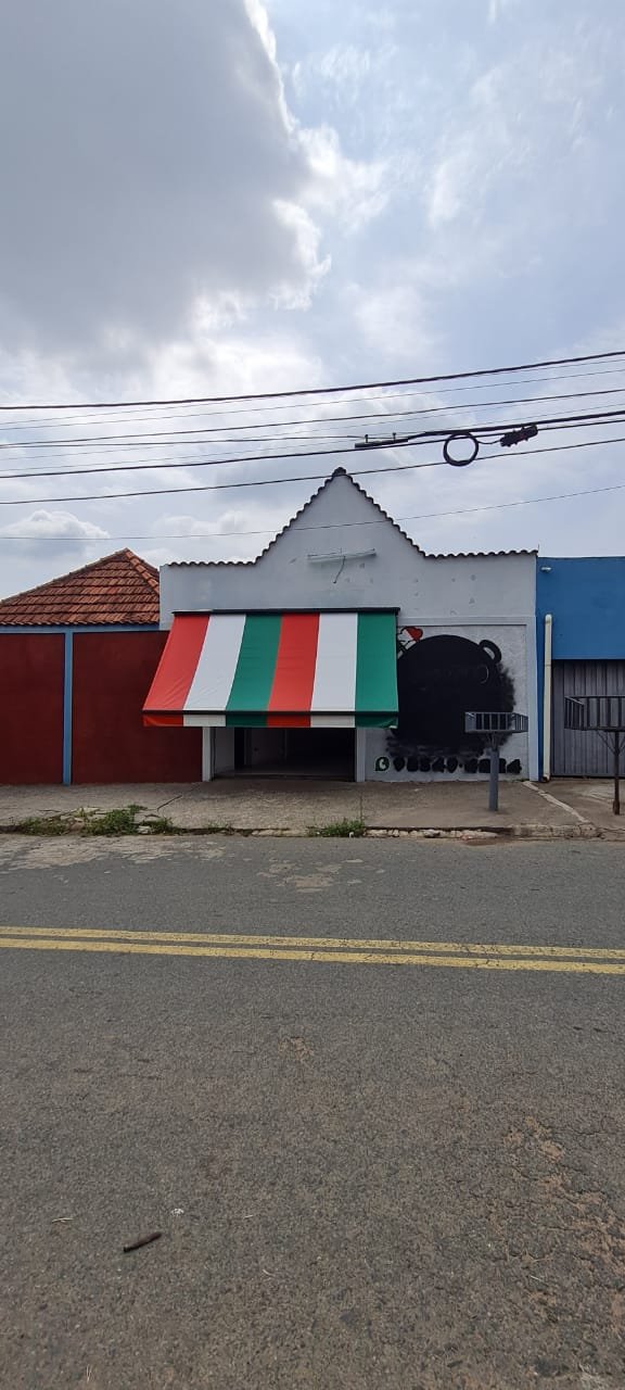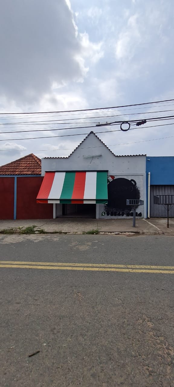 Fachada:- Piso em concreto desempenado com trincas desgaste natural do tempo o restante em ordem, fachada com textura com a pintura cinza e preto o restante em ordem, porta de aço com a ferragens em ordem, soleira de mármore em ordem, toldo em nas cores verde, branco e vermelho com alça para abertura em ordem, 01 lâmpada tubular em ordem, 01 lixeira chumbada na calçada em ferro com a pintura na cor cinza em ordem,