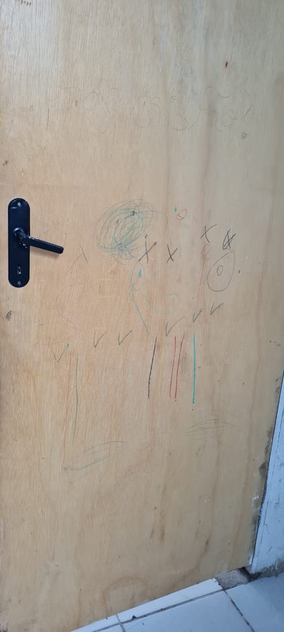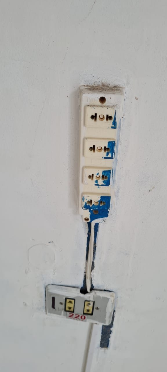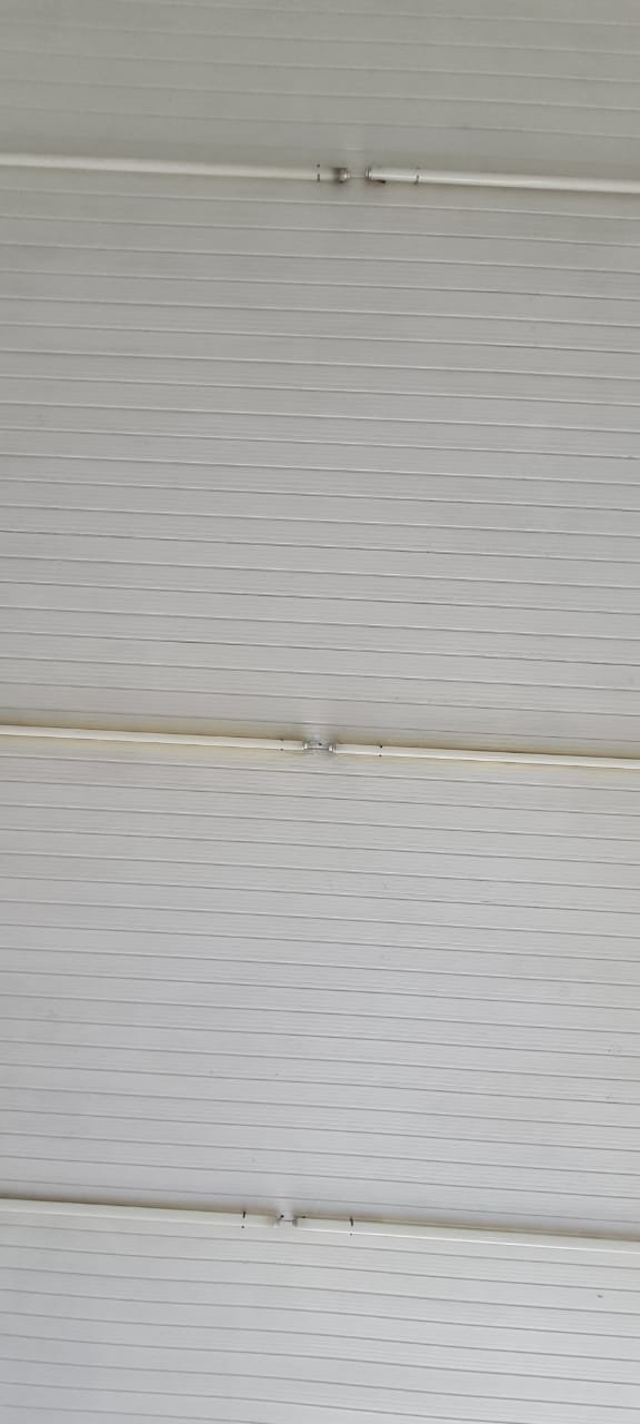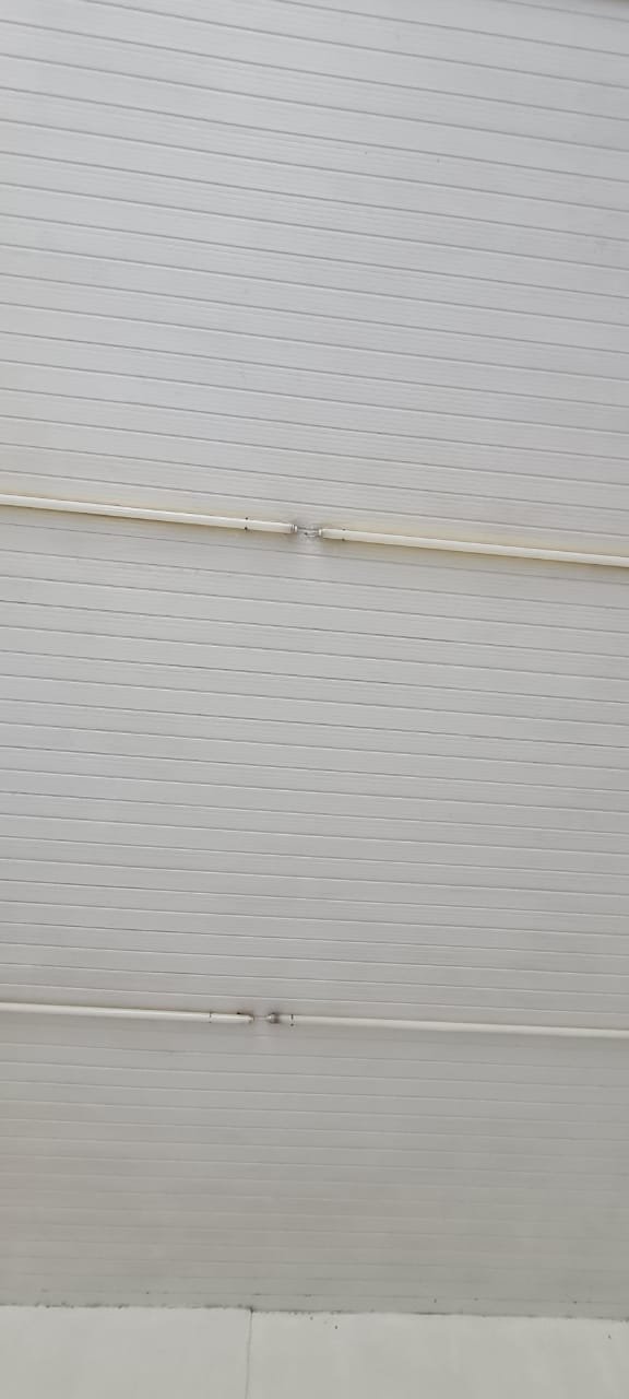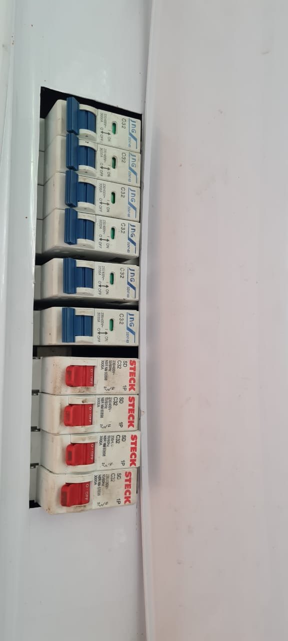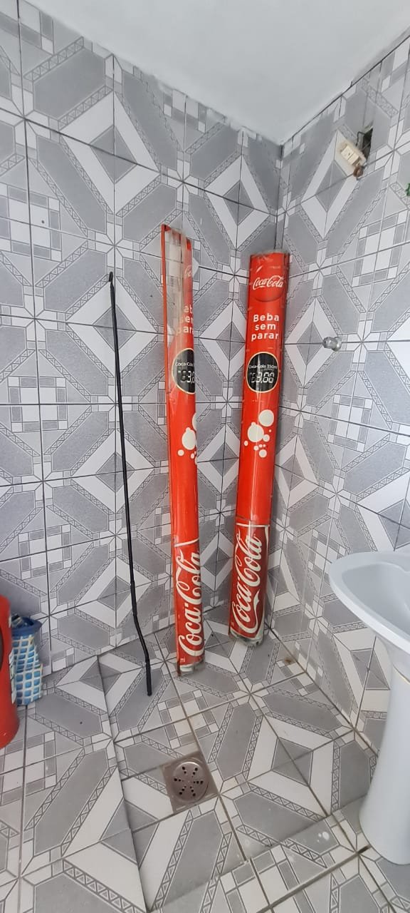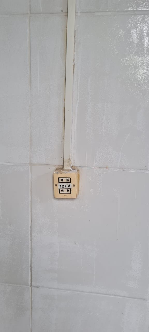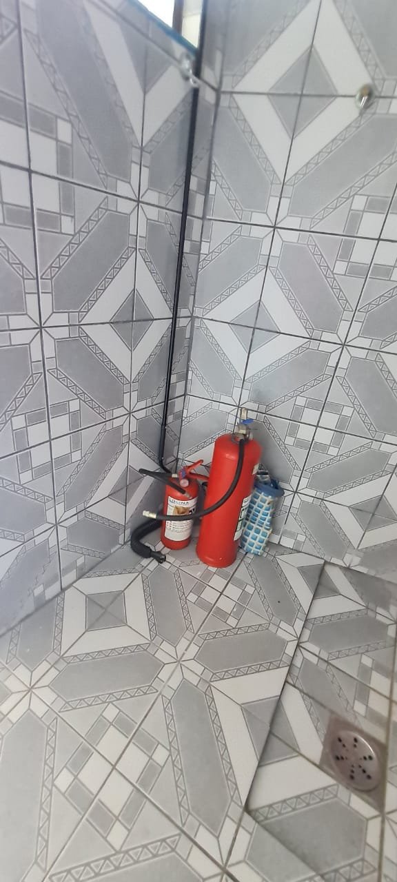 Salão: Piso cerâmico mesclado com manchas e lascados desgaste natural do tempo o restante em ordem, rodapés cerâmicos em ordem, paredes com a pintura na cor branco sendo duas paredes com textura em grafiato também na cor branco o restante em ordem, lateral da parede do fundo com 05 fileiras em azulejos do teto ao chão também com a pintura na cor branco em ordem, teto em forro pvc na cor branco em ordem, 06 lâmpadas tubulares em ordem, 05 tomadas sobrepor com saída para força/ energia em ordem, 02 interruptores de força/energia com espelho em ordem, 01 extensão fixada na parede com 04 saídas para força/energia em ordem, 05 interruptores de força/energia com espelho em ordem, 01 interruptor duplo sem espelho, 01 interruptor simples sem espelho, 01 interruptor duplo faltando um modulo de força/energia, 01 interruptor de luz triplo com espelho, 01 janela em ferro com vidro fixo em ordem, 01 porta de madeira com batente em ordem, fechadura em ordem, maçaneta em ordem, sem as chaves, com desenhos de criança a lápis na folha pelo lado de dentro e no batente o restante em ordem, 02 extintores, 02 fechamentos para porta de ferro coca cola com acrílico quebrado o restante em ordem, 01 caixa adjutores com tampa contendo 10 djuntores em ordem 02 caixas djuntores para passagem dos fios com tampa em ordem, 01 caixa com tampa 06 djuntores em ordem, 01 central de alarme alard Max Rf em ordem,