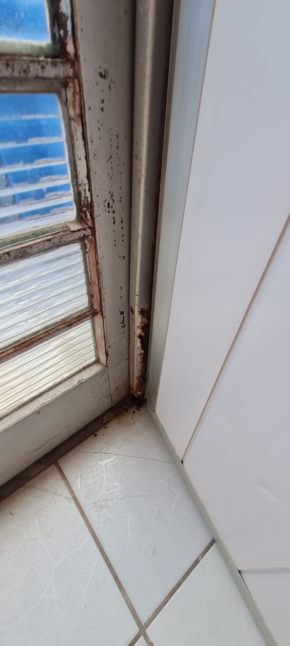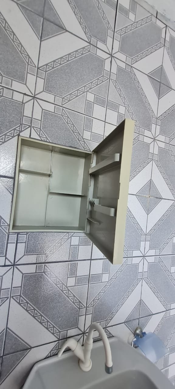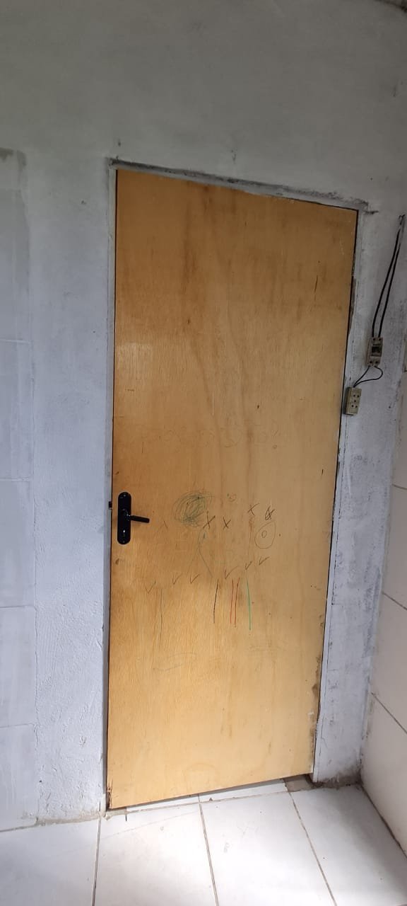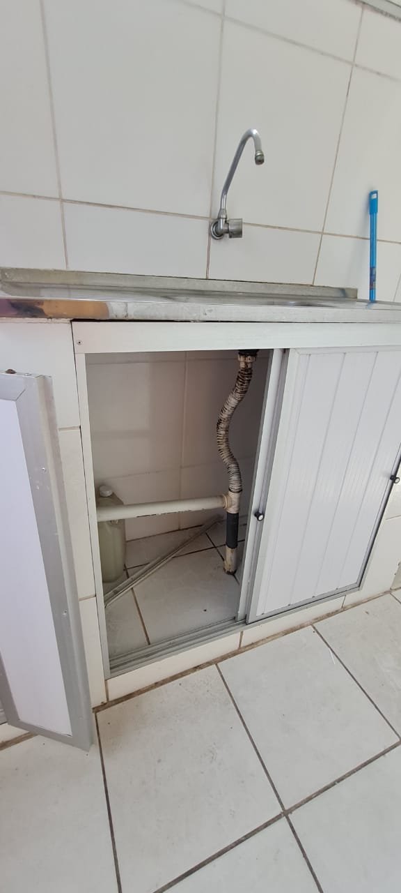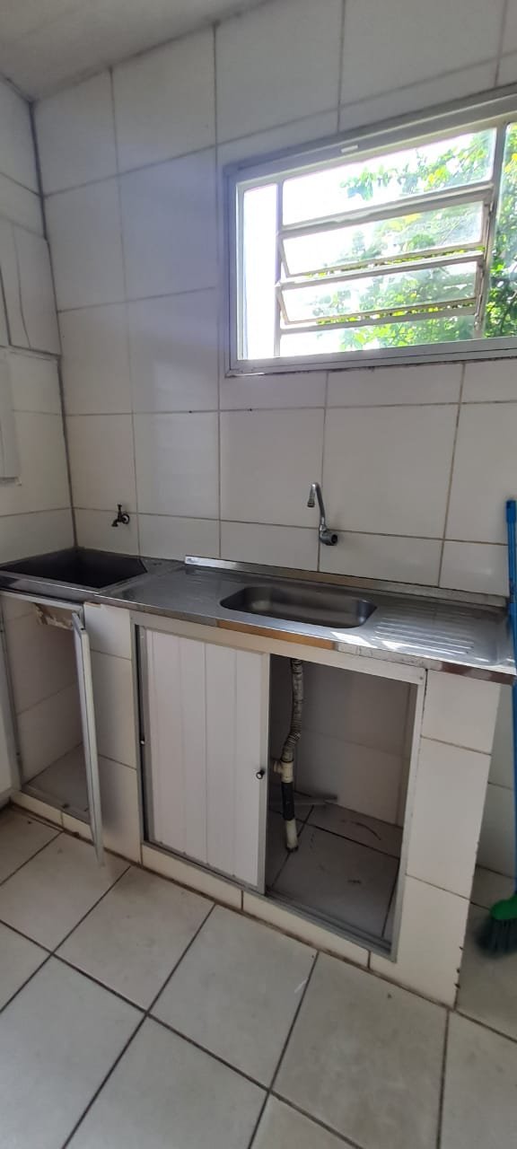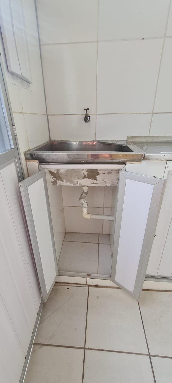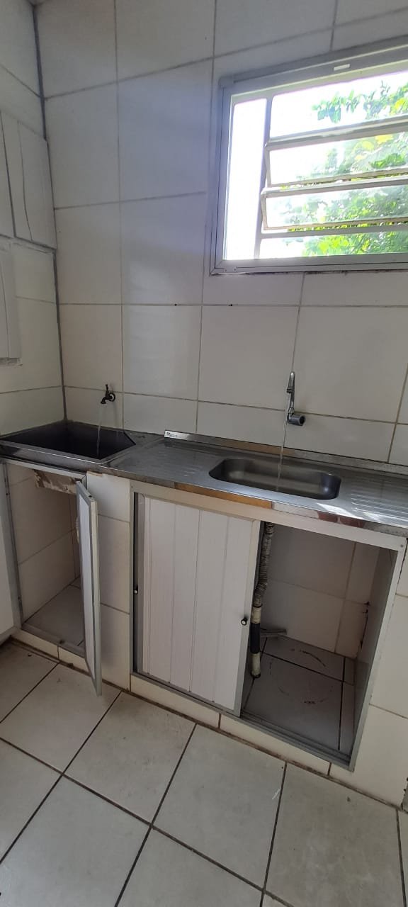 Cozinha:- Piso cerâmico mesclado antiderrapante em ordem, paredes com azulejos ate o teto sendo uma parede com azulejos com a pintura a tinta na cor branco em ordem, teto em forro de pvc em ordem, 02 lâmpada tubulares em ordem, 01 janela em ferro basculante contendo 06 vidros e havendo a falta de 03 o restante em ordem, 01 janela basculante em ferro contendo 11 vidros em ordem, 01 porta de ferro contendo 11 vidros em ordem, fechadura em ordem, trancada sem as chaves batente interno oxidado o restante em ordem, 01 folha em alumínio com a sua base em PVC e a parte superior em tela de abrir com puxadores em ordem, 01 pia em inox em ordem, 01 torneira de rosca em ordem, válvula em ordem, sifão desentupido em ordem, 02 portas em inox com revestimento em pvc de correr em ordem, 01 tanque em inox em ordem, 01 torneira de rosca em ordem, válvula em ordem, sifão desentupido em ordem, 02 portas em inox com revestimento em pvc de abrir em ordem, 02 interruptores de força/energia duplo com espelho em ordem, 03 interruptores de luz com espelho em ordem, 01 extensão com 02 saídas para força fixada na parede o restante em ordem,
