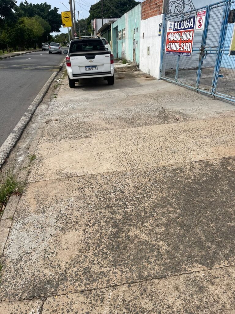 FACHADA-: Calçada de concreto com desgastes naturais, rachaduras e manchas pela extensão, muro com pintura barrada na cor branco neve nova e em ordem, restante dos muros em tijolos aparente com partes danificadas e restante em ordem, caixa com tampa de proteção do hidrômetro com tampa e lacre em ordem padrão sanasa, 01 expositor do medidor elétrico de ferro vazado em ordem, portão de ferro gradeado com pintura na cor azul com desgastes naturais, descasques e pigmentos de ferrugem, 03 fechaduras ferrolhos em ordem, 01 corrente de ferro com 01 cadeado marca Pado em ordem, também contendo 01 porta social, 01 caixa de correspondência danificada, cerca serpentina passando pelo muro e pelo portão sendo que partes dela está danificada e tortas.