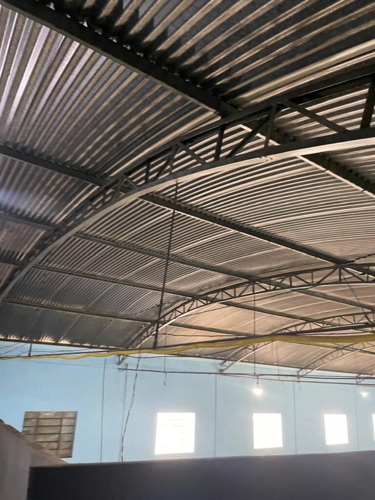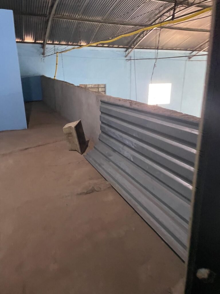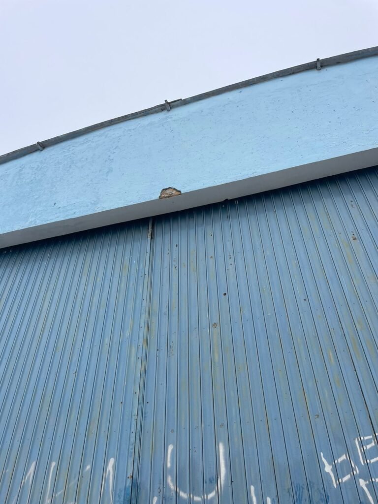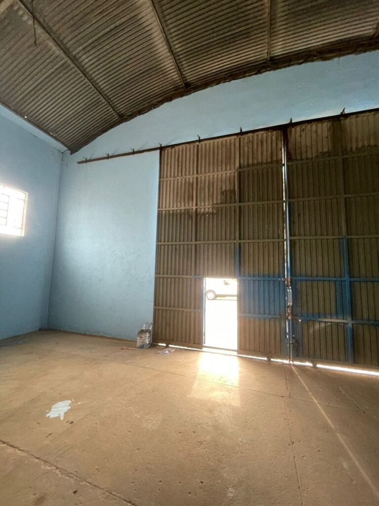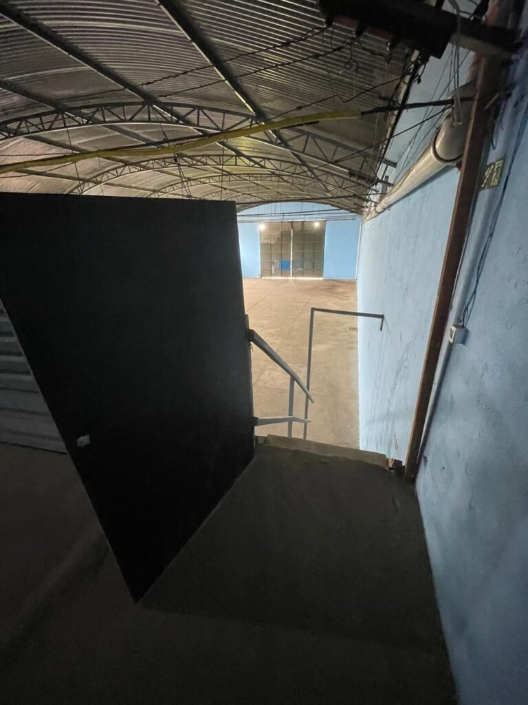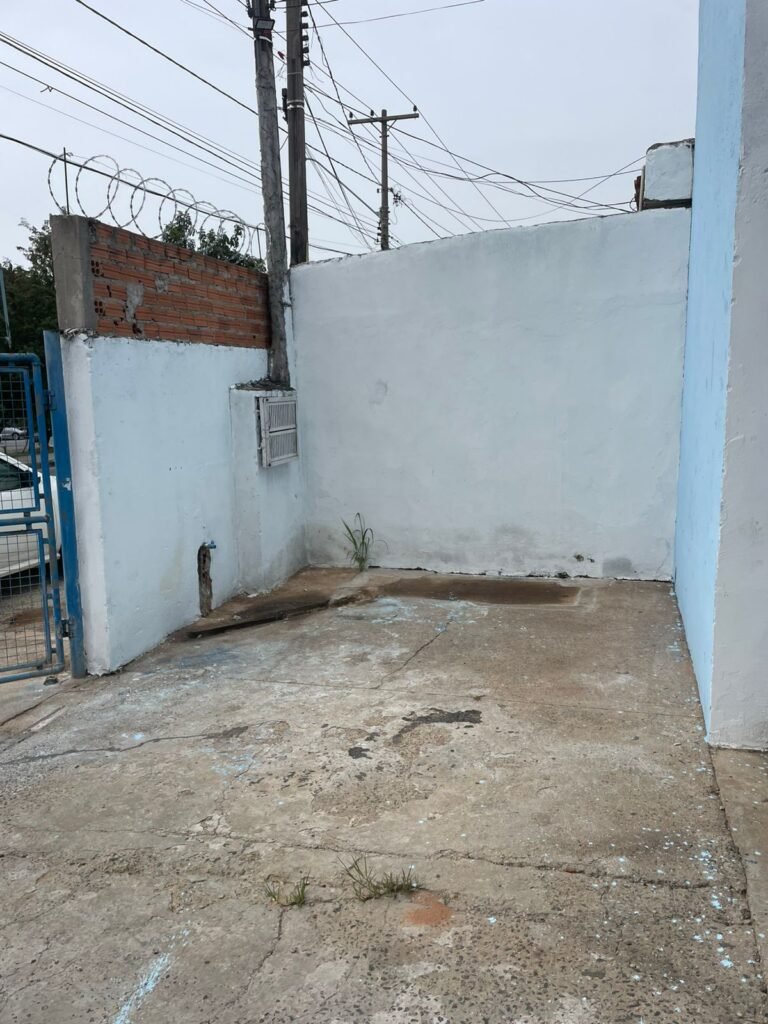 BARRACÃO-: 01 Portão deslizante de chapas de ferro em ordem, com pintura na cor azul com desgastes naturais e descasques, 02 puxadores em ordem, 01 fechadura alavanca em ordem, 02 fechaduras ferrolho em ordem, 01 trinco para cadeado em ordem e com 01 cadeado marca Pado em ordem, portão contém 01 porta social com 01 puxador em ordem e 01 fechadura start marca 3F com chave em ordem, piso em concreto desempenado com desgastes naturais, trincados e manchas pela extensão, paredes com pintura na cor azul com pequenas manchas pela extensão e restante em ordem, 06 vitrôs basculantes com esquadrias de ferro com desgastes naturais, 01 deles contendo 18 vidros canelados, restante contendo 14 vidros canelados, sendo que todos possuem 01 fechadura alavanca não testadas, ambos com vidros com desgastes naturais, manchas de tinta e trincados. 01 vitrô basculante isolado, 01 porta social de ferro isolada, 01 escada de madeira com guarda corpo com desgastes naturais, 01 ponto de água com 01 torneira de jardim em ordem, estruturas de ferro para iluminação, contendo cinco lâmpadas Led e 01 lâmpada incandescente, 06 tomadas sendo que 01 delas é 220 watts, 05 interruptores em ordem, 01 caixa de distribuição de disjuntor, contendo tampa em ordem e 01 disjuntor Steck SD-63C70 400v em ordem.