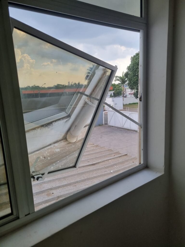 Conserto vitrô na sala administrativa do piso superior;