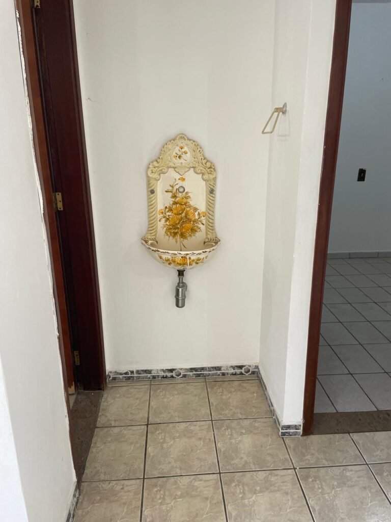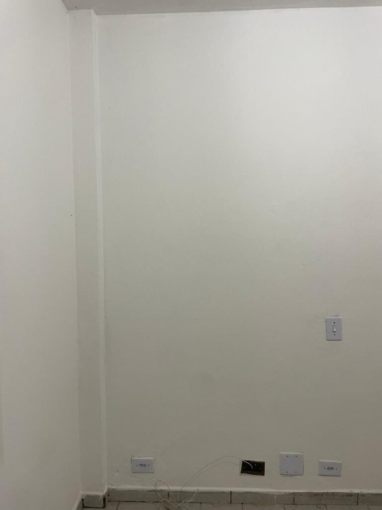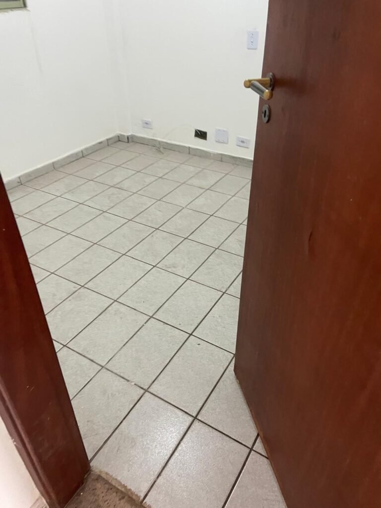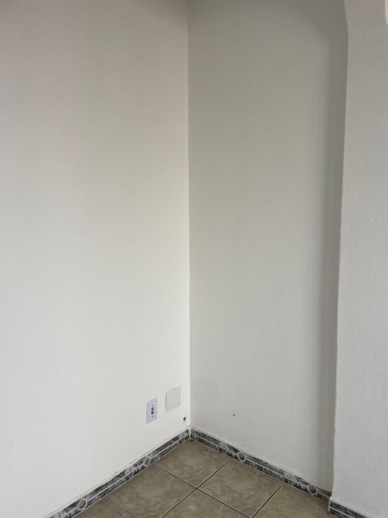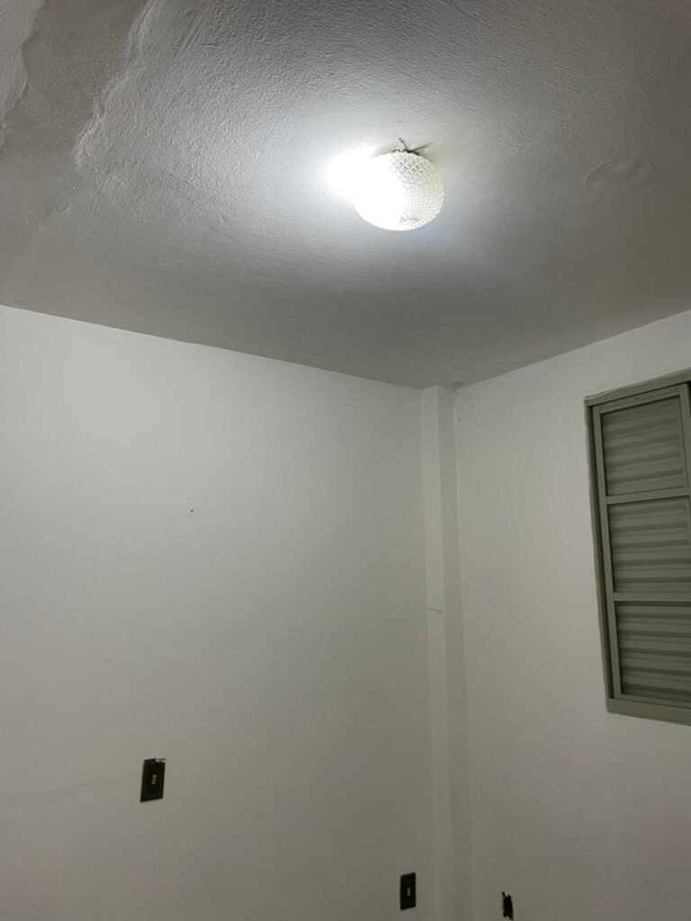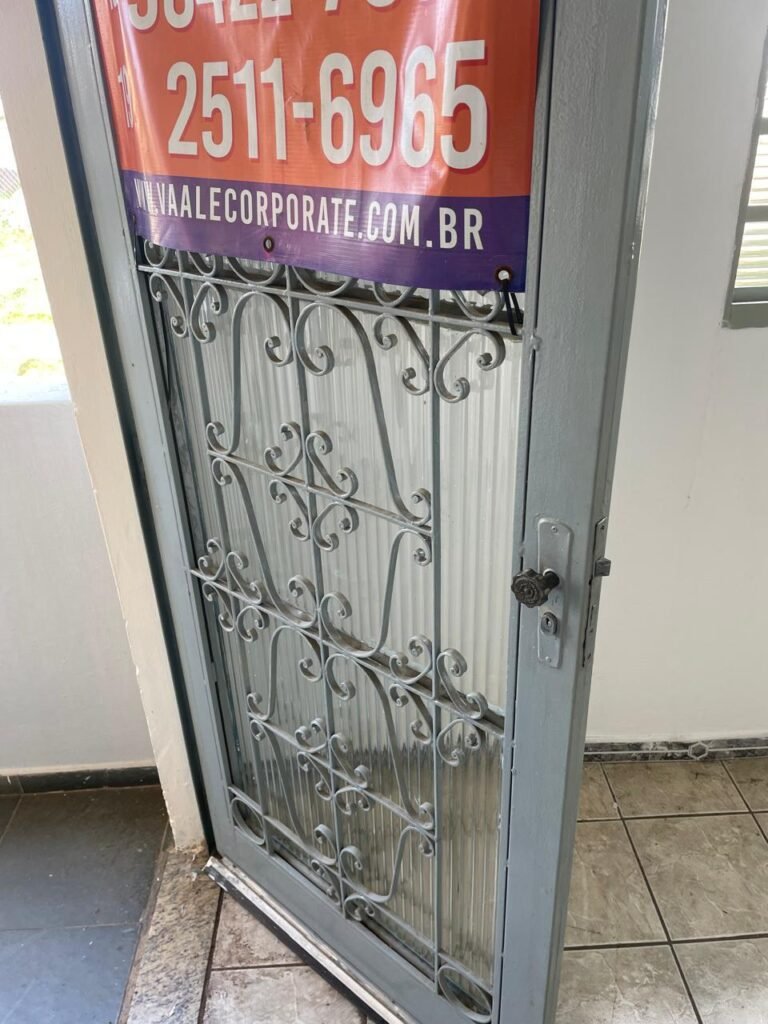 SALA-: 01 porta de ferro modelo imperial com pintura na cor cinza com desgastes naturais, com 04 vidros canelados em ordem com 02 travas em ordem, com maçaneta com desgastes naturais e restante em ordem, com fechadura marca Arouca em ordem com chaves, piso e rodapés revestidos de pisos frios cerâmicos com manchas de tintas e desgastes naturais, paredes e teto com pintura na cor branco neve em ordem e com manchas de infiltrações, 01 fonte de cerâmica com desenhos, 01 sifão em inox em ordem, 01 spot sem lâmpada, 01 suporte de toalha de rosto em ordem, 06 espelhos de luz sendo eles, 01 com 01 interruptor em ordem, 01 com 02 interruptores em ordem, 02 com 01 tomada em ordem, 01 com 04 tomadas em ordem e 01 espelho cego em ordem, 01 caixa de proteção com tampa de ferro em ordem dos disjuntores gerais, 04 disjuntores sendo eles 02 de 25 e 02 de 15 em ordem. Janela de ferro com esquadrias com pintura na cor cinza, com desgaste natural, contendo 28 vidros canelados em ordem, contendo 03 fechaduras e 01 trinco para por cadeado em ordem, 01 bocal de lâmpada.