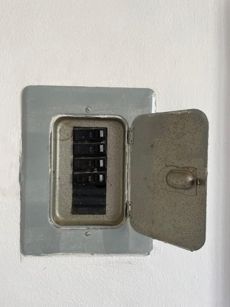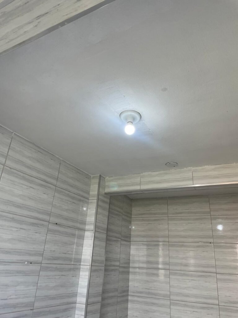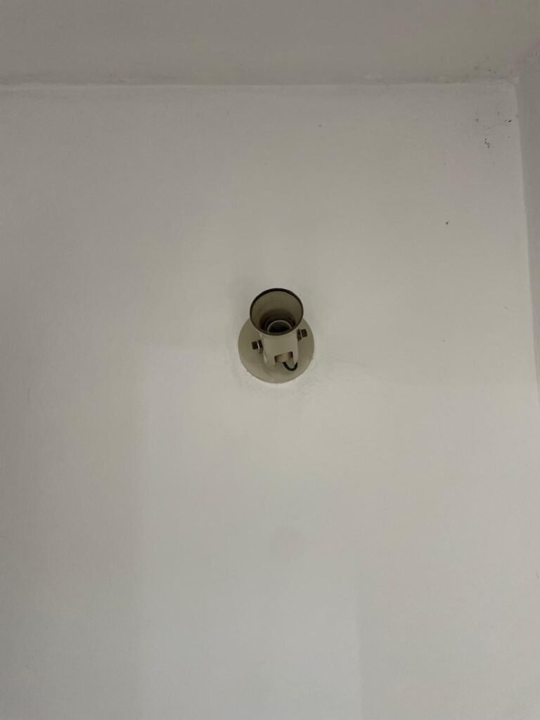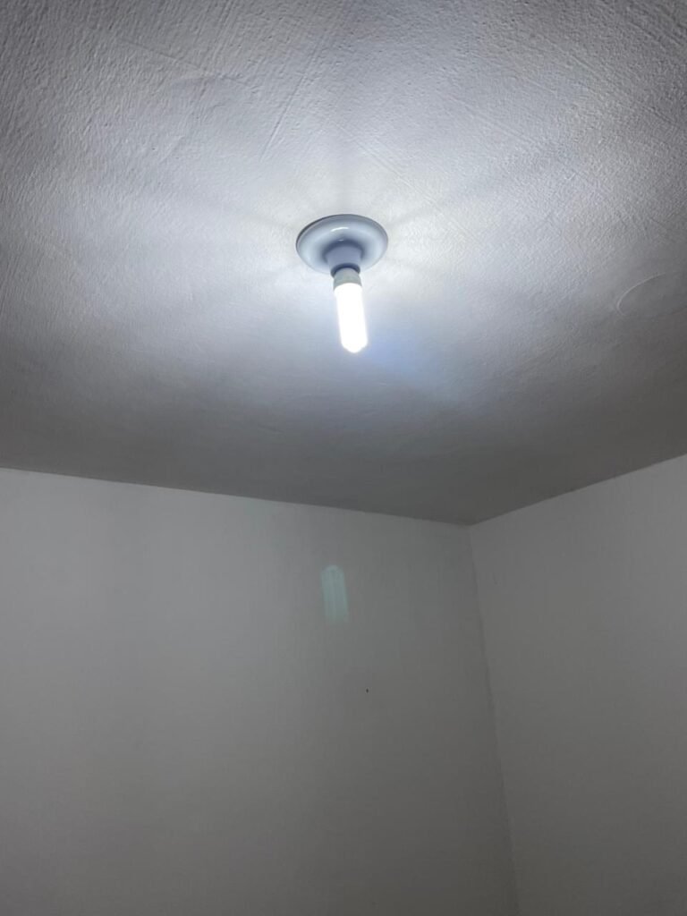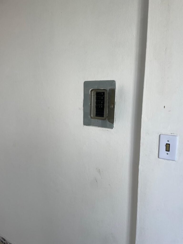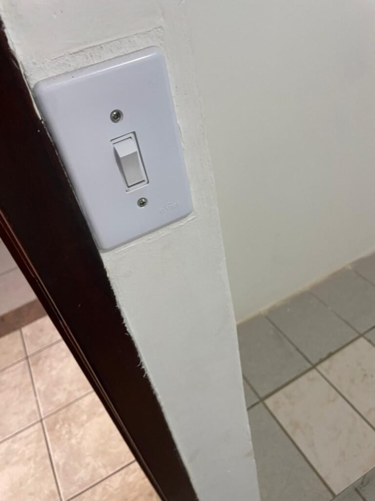 SALA-: 01 porta de ferro modelo imperial com pintura na cor cinza com desgastes naturais, com 04 vidros canelados em ordem com 02 travas em ordem, com maçaneta com desgastes naturais e restante em ordem, com fechadura marca Arouca em ordem com chaves, piso e rodapés revestidos de pisos frios cerâmicos com manchas de tintas e desgastes naturais, paredes e teto com pintura na cor branco neve em ordem e com manchas de infiltrações, 01 fonte de cerâmica com desenhos, 01 sifão em inox em ordem, 01 spot sem lâmpada, 01 suporte de toalha de rosto em ordem, 06 espelhos de luz sendo eles, 01 com 01 interruptor em ordem, 01 com 02 interruptores em ordem, 02 com 01 tomada em ordem, 01 com 04 tomadas em ordem e 01 espelho cego em ordem, 01 caixa de proteção com tampa de ferro em ordem dos disjuntores gerais, 04 disjuntores sendo eles 02 de 25 e 02 de 15 em ordem. Janela de ferro com esquadrias com pintura na cor cinza, com desgaste natural, contendo 28 vidros canelados em ordem, contendo 03 fechaduras e 01 trinco para por cadeado em ordem, 01 bocal de lâmpada.