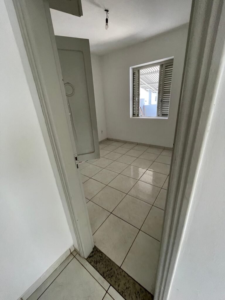 QUARTO 02-: 01 porta social de madeira com pintura na cor branco com desgastes naturais e restante em ordem, puxador e maçaneta embutida em apenas 01 lado, com 01 trinco marca Aliança, piso e rodapés revestidos de frio cerâmico na cor branco com desgaste natural, manchas de tinta e trincados pela extensão, paredes com pintura na cor branco neve nova e em ordem, 04 espelhos de luz sendo eles, 01 espelho com 01 interruptor, 02 espelhos com 01 tomada e 01 espelho com, fiação aparente. 01 janela deslizante com 02 folhas venezianas e com 01 fechadura em ordem, 02 folhas com 06 vidros lisos com manchas de tinta, com 02 fechadurasem inox em ordem e com 02 trincos para cadeado em ordem. Paredes com pintura nova na cor branco neve em ordem, 01 guarda-roupa de madeira com pintura na cor branco, com desgastes naturais, porta com puxador e maçaneta embutida, guarda-roupa com 04 portas deslizantes, dois puxadores de inox em ordem, são dois espelhos com tomada e uma fiação aparente, janela com seis vidros e 02 fechaduras, teto com pintura nova na cor branco neve em ordem, 01 lâmpada em ordem.