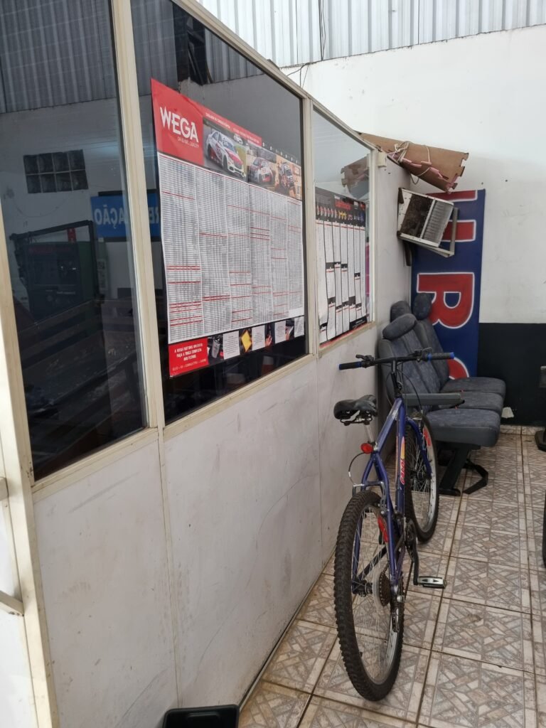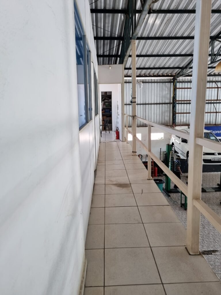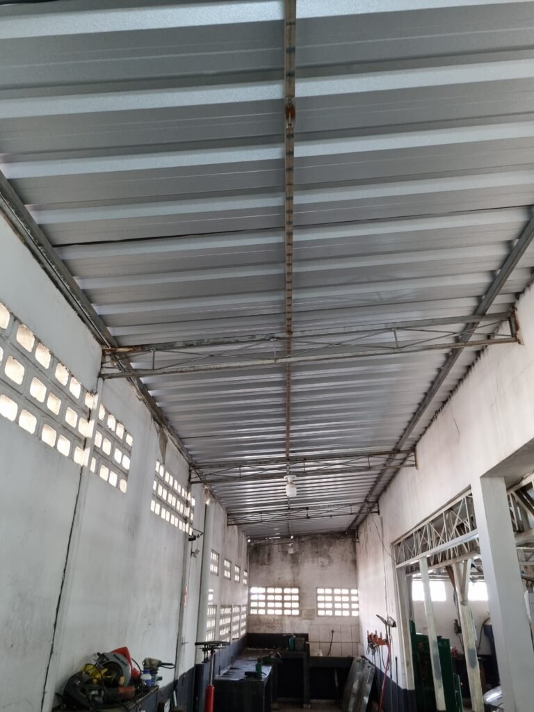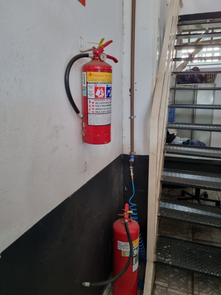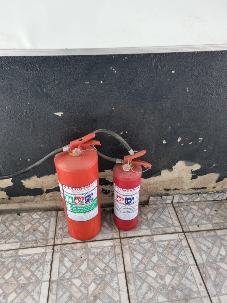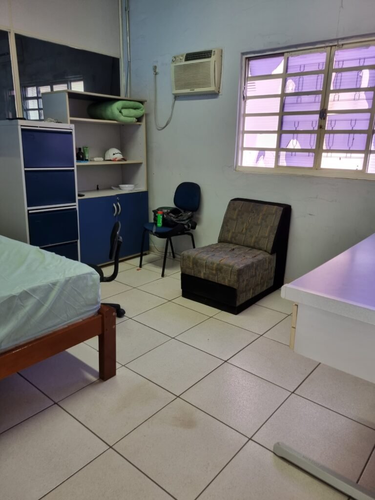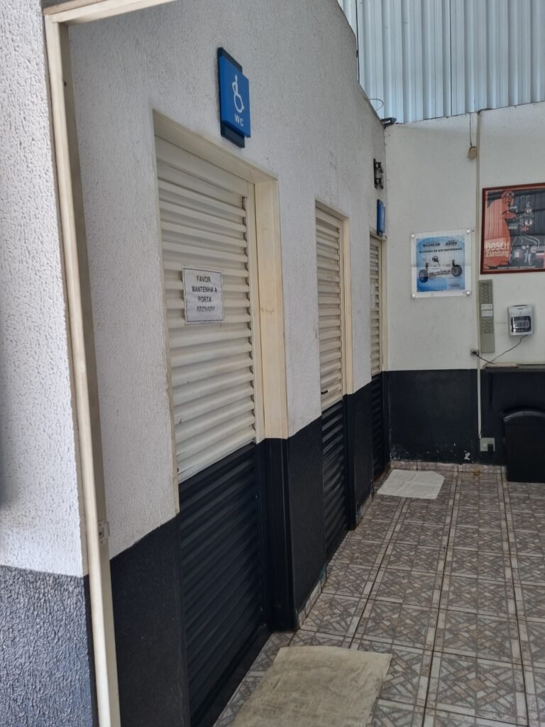 GALPÃO:- Piso frio cerâmico mesclado faltando 10 peças na entrada próximo aos portões, 07 peças quebradas próximo aos portões, trincas do meio da galpão em toda a extensão de portas ao fundo com 60 peças quebradas, varias peças picotadas no piso em geral, ½ parede de alvenaria reboco com pintura na cor branco com manchas e desgaste de uso restante barrado na cor preto em ordem, telhas galvanizadas em ordem, telhado estrutura ferro com telhas galvanizadas em ordem, 06 lustres em ordem, 06 lâmpadas florescentes em ordem, caixa disjuntores com tampa em ordem, com 12 disjuntores em ordem, 05 extintores pó químico 4Kg 20-B:C em ordem, 03 extintores água 10Lt 2-A em ordem, 01 extintor pó químico 8 kg 20-B:C em ordem, 02 bancadas alvenaria com reboco e pintura na cor preto, 02 tanques de plástico com manchas, 01 torneira de jardim em ordem, 03 prateleiras de chapa xadrez, 02 tanques de alvenaria revestido de azulejos em ordem, 01 torneira jardim em ordem, 03 ralos com tampa de ferro em ordem, 04 lâmpadas LED bulbo em ordem e escritório divisório naval com 05 vidros fume em ordem , 02 vidros liso transparente em ordem, 01 porta com fechadura quebrada, teto forro PVC branco.