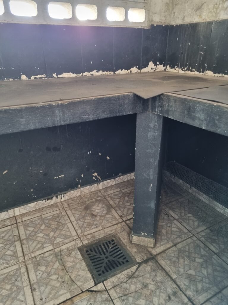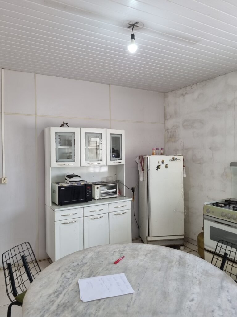 DESPENSA:- Piso frio cerâmico, Parede reboco, lustre, lâmpada em ordem, interruptor em ordem, porta de ferro.